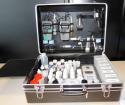 A conventional opening case with side work station, universal equipment board (lid) and external document wallet containing :