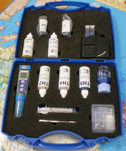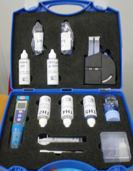 Mallette complète avec mousse , équipements, accessoires …. Et réactifs pour au moins 100 tests TH (grands flacons de 65ml) 3 réactifs Ch...