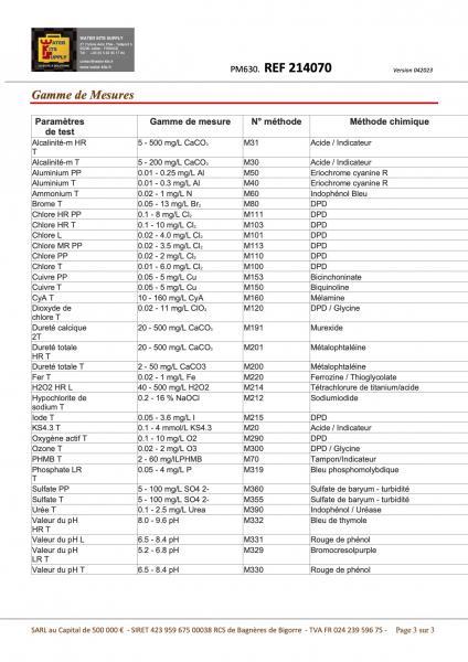 Recharge 100 tests pour Trousse Aluminium 0 – 0,5 mg/l (Al) C'est aussi Photomètre MD600 Méthode 40 ...