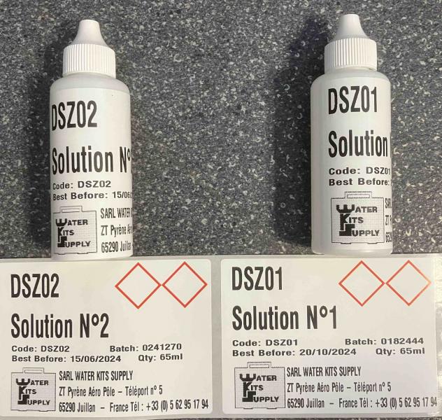 KIT TH (Dureté Totale) 0 - 6 degrés français - Gamme Basse, complet en mallette avec grands flacons compte-goutte 65ml (1500 gouttes) TH5 et TH3, un v...