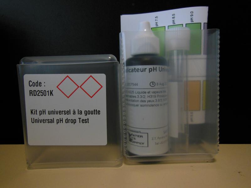 Kit pH Universel Kit complet avec tube, carte de couleur et le flacon d’indicateur de pH universel (65ml) pour la mesure du pH avec un seu...