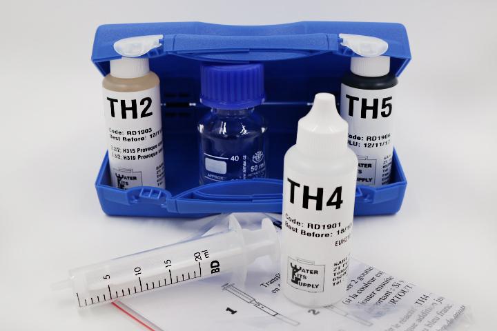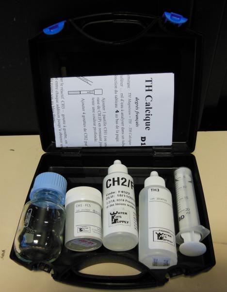 KIT TH (Dureté Calcique) 0 - 5 degrés français dans une petite mallette contenant : - Les réactifs pour au moins 100 tests - Un vase de dosa...