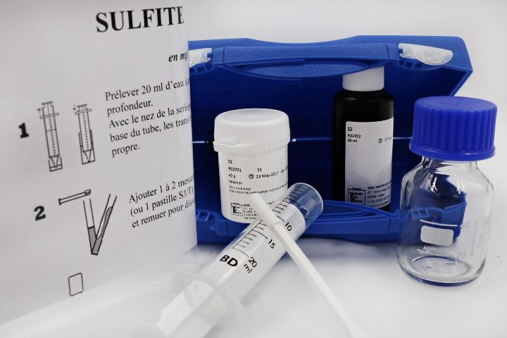 KIT SULFITE 0 - 100 mg/l Na2SO3 dans une petite mallette. Méthode à la goutte avec un virage de couleur net et une précision tous les 5mg/l sur une...